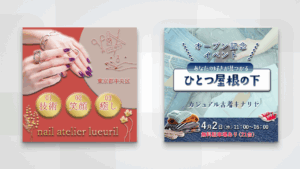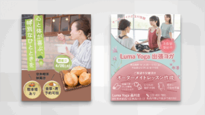 【製作時間】15時間【使用ソフト】Photoshop・Canva【担当業務】デザイン【意識した亊】シンプルを意識し、女性向けに制作しました。